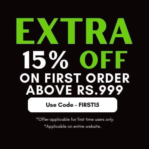 Flat 15% off on all orders above Rs.999. Offer available on order value above Rs.999. Apply the code at checkout.