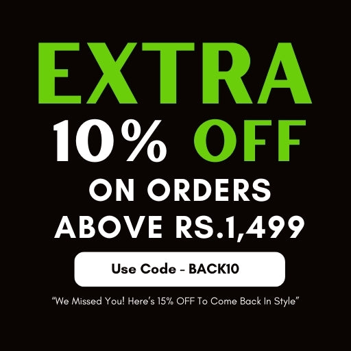 Flat 10% off on all orders above Rs.1,499. Offer available on order value above Rs.1,499. Apply the code at checkout.
